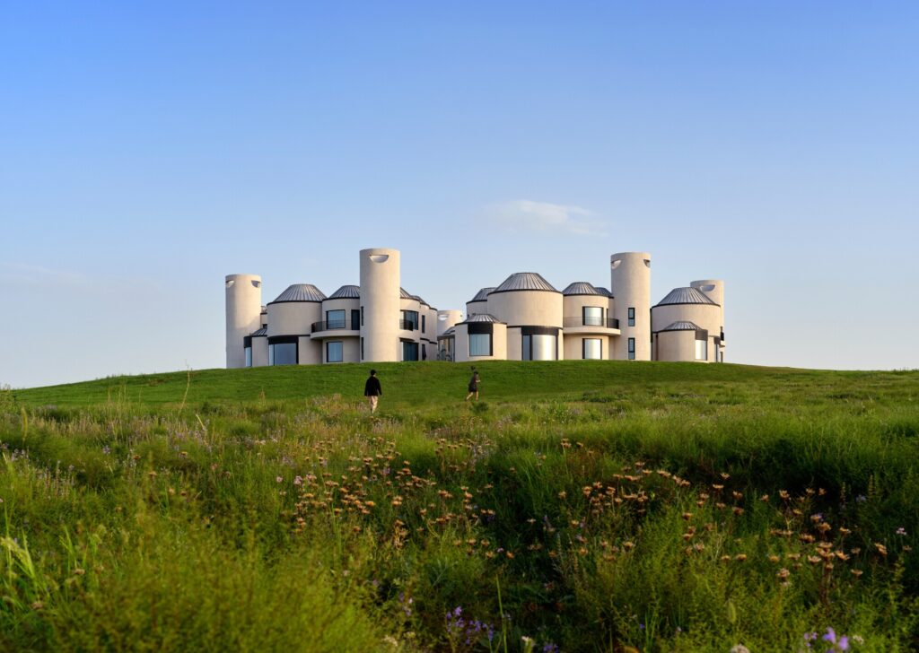 Imagine a futuristic living space that blends cutting-edge design with the rugged beauty of the grasslands—sounds like something out of